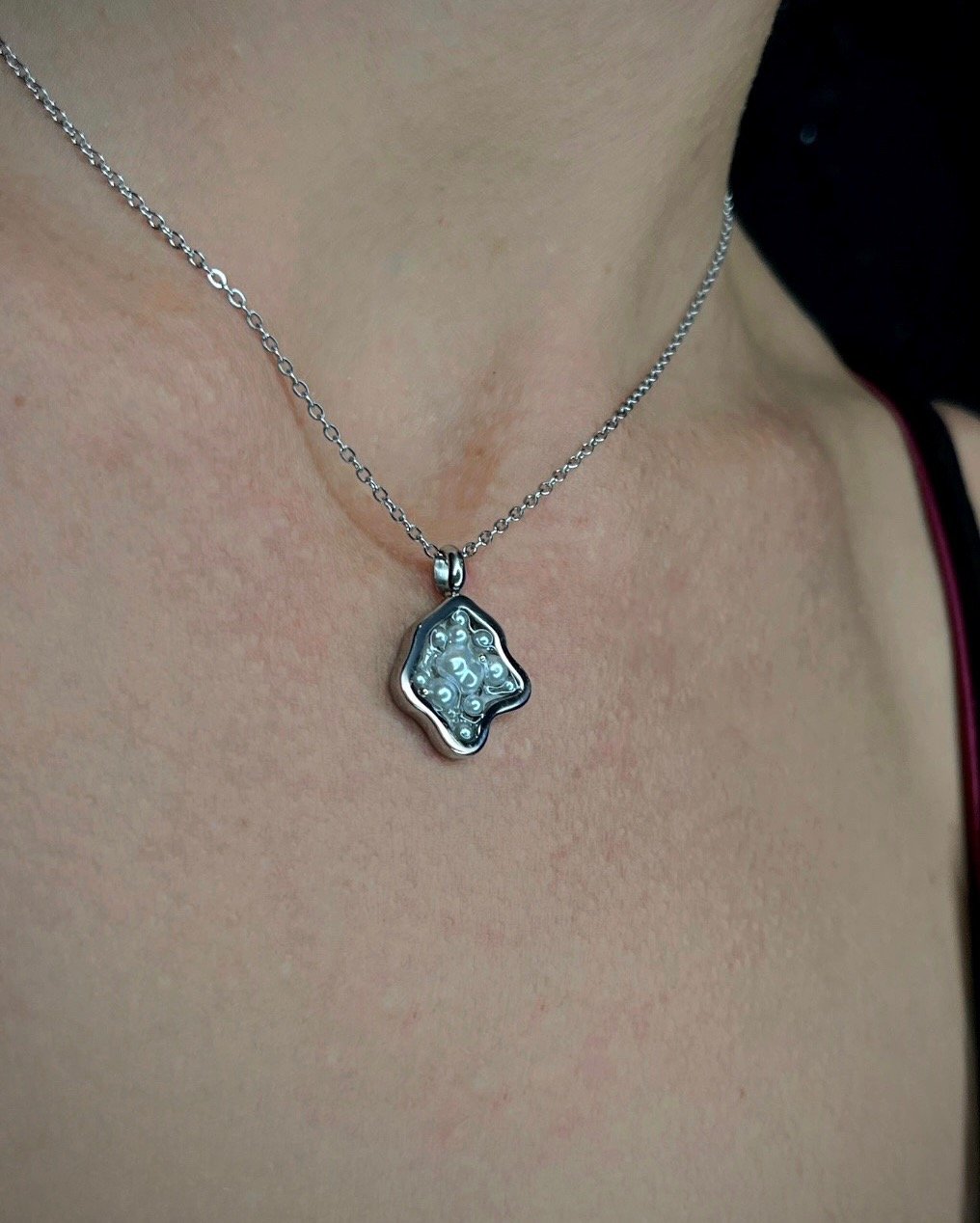 Questa collana incarna l’essenza della trasformazione e della rinascita. Realizzata in acciaio inossidabile placcato oro, questa creazione unica è un simbolo di eleganza e resistenza. Le perle, che ricordano delicate molecole, si intrecciano armoniosamente, creando un design che celebra la bellezza della natura e la complessità della vita.